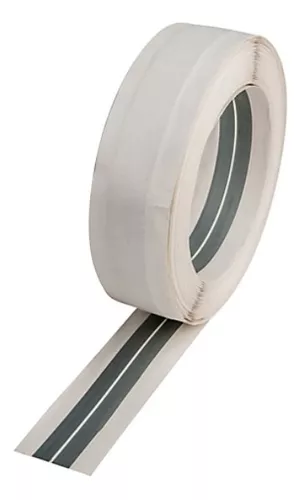 Cinta metálica delta de alta adhesión con doble fleje de aluminio flexible en el centro, ideal para utilizar en esquinas y juntas en placas de materiales drywall, posee una alta resistencia a la tracción y es muy fácil de cortar.