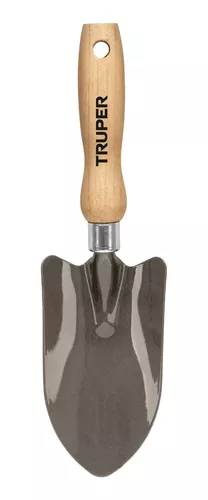 Cuchara para jardín, mango de 6″, Truper Cabeza fabricada en acero al carbono Mango de madera Con bordes redondeados para conservar raíces Cuenta con orificio para colgar